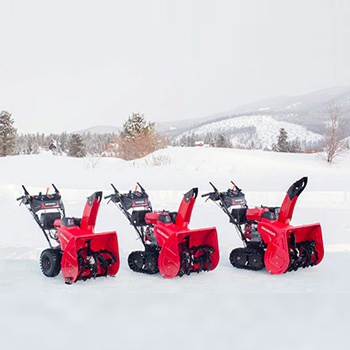 • Snow blowers: wheel drive, track drive, and lightweight models capable of moving from 1500 to 3000 lbs of snow.